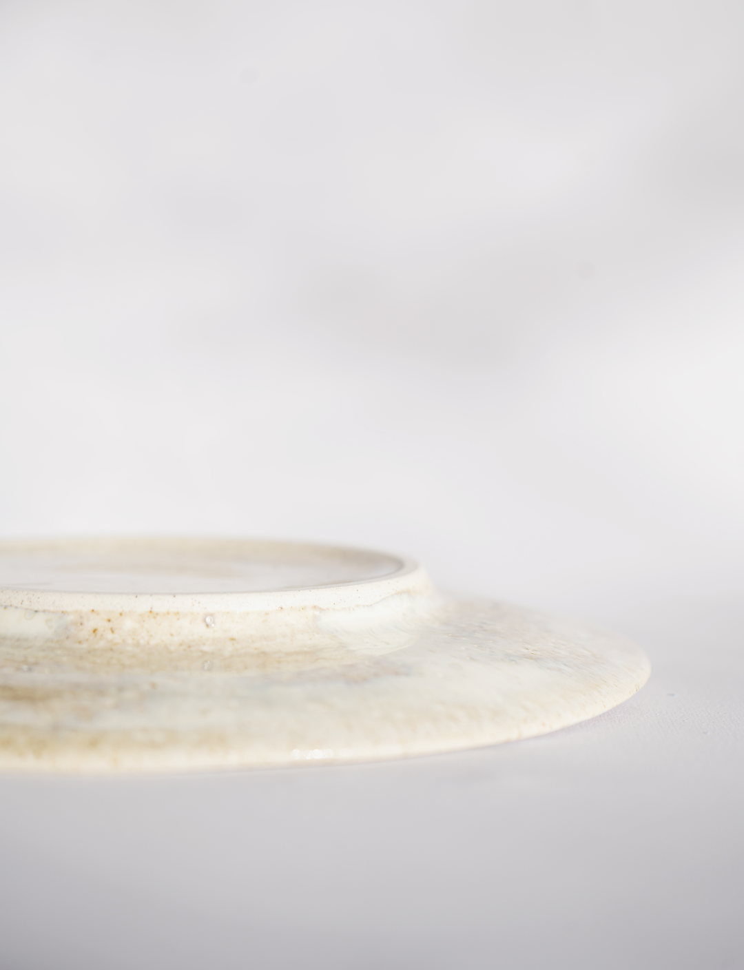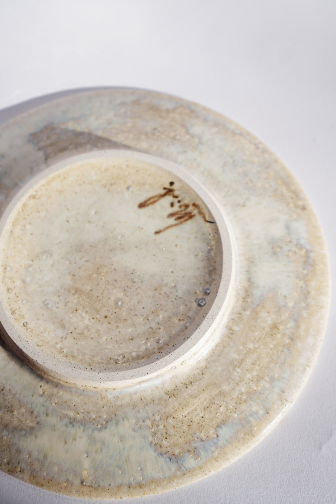 This hand-painted porcelain plate is blending whimsical storytelling with a raw, artisanal finish. The design centers on an imaginative, folklore-inspired scene featuring a rabbit and a horse, rendered with expressive linework and a warm, autumnal palette.