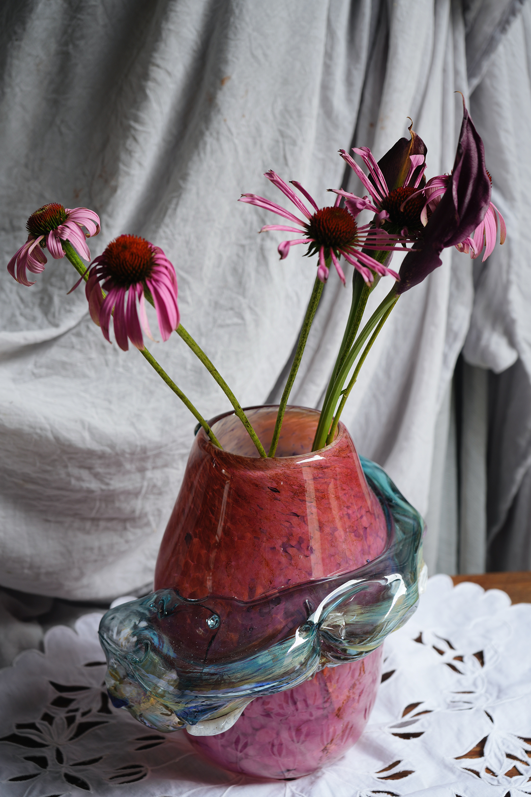 The "Air Dragon" reveals its spirit through a chaotic crown of fused glass shards. Like scales caught in the act of crystallization, these protrusions erupt from the vessel’s shoulder:
