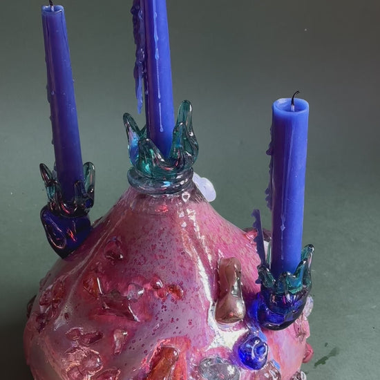 "Flower bud in pink" blown-glass candelabra